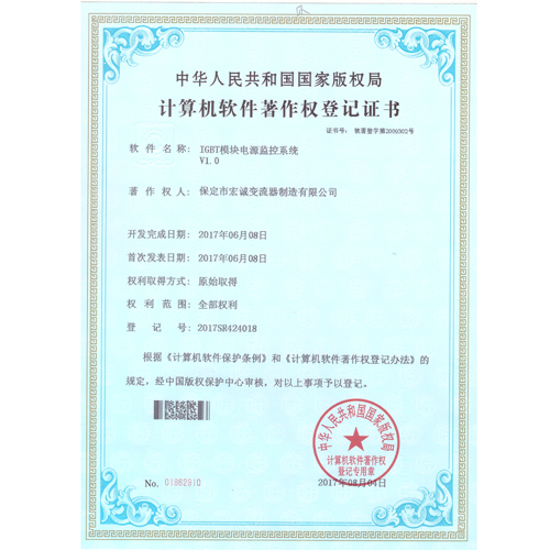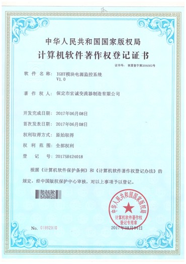 計算機軟件注冊權登記證書——IGBT模塊電源監控系統V1.0