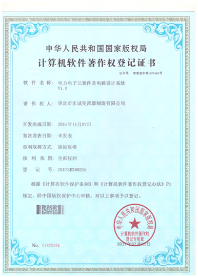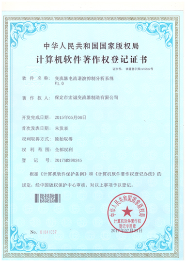 計算機軟件注冊權登記證書——變流器電流諧波抑制分析系統V1.0