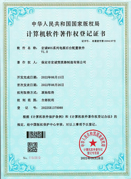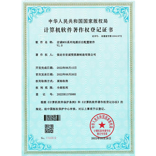 計算機軟件注冊權登記證書——整流電源開放式測試平臺V1.0